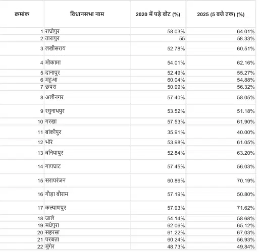 Bihar Election 2025: 2020 में किस सीट पर कितने प्रतिशत वोटिंग हुई थी