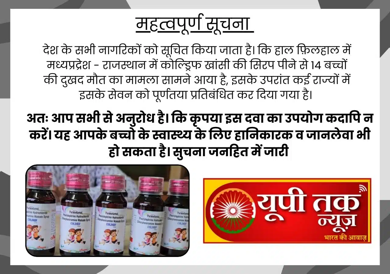 Coldrif Cough Syrup: पुलिस ने दर्ज की शिकायत