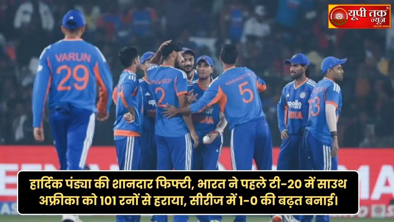 Cuttack: हार्दिक पंड्या की शानदार फिफ्टी के बाद, टीम इंडिया ने अपनी घातक गेंदबाजी से पहले टी20 में साउथ अफ्रीका को 101 रनों से पराजित किया. इस जीत के साथ, टीम इंडिया ने पांच मैचों की श्रृंखला में 1-0 की बढ़त हासिल कर ली है. इस मुकाबले में, टीम इंडिया ने टॉस हारने के बाद पहले बल्लेबाजी करते हुए निर्धारित 20 ओवर में 6 विकेट के नुकसान पर 175 रन बनाए. इसके जवाब में, मेहमान टीम 12.2 ओवर में 74 रन बनाकर आउट हो गई.