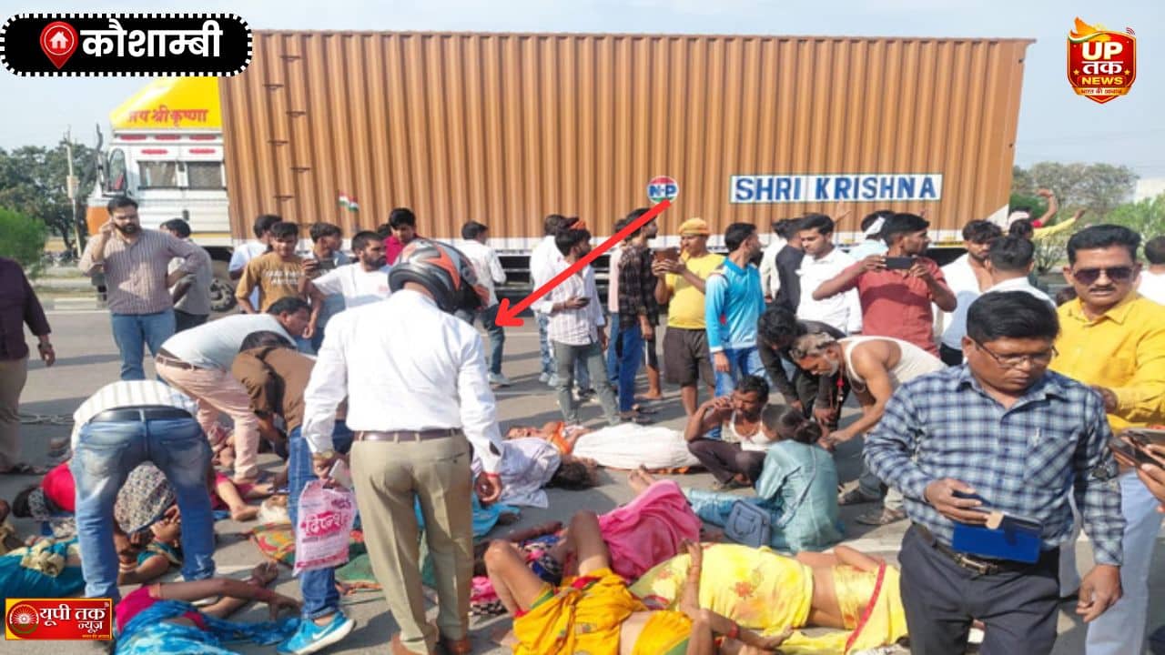 Kaushambi, UP Tak News: कानपुर–प्रयागराज हाईवे पर शुक्रवार को एक भयानक सड़क दुर्घटना में आठ लोगों की जान चली गई। इस हादसे में 17 श्रद्धालु घायल हुए हैं। यह घटना सैनी थाना क्षेत्र के डोरमा पेट्रोल पंप के पास उस समय हुई जब तेज रफ्तार पिकअप अनियंत्रित होकर सड़क किनारे खड़े ट्राले से टकरा गई। टक्कर इतनी भयंकर थी कि पिकअप के टुकड़े उड़ गए और उसमें सवार यात्रियों में चीख-पुकार मच गई। मृतकों में तीन बच्चे, तीन महिलाएं और दो पुरुष शामिल हैं।