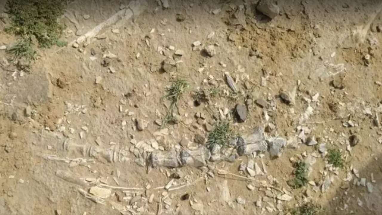 Jaisalmer, Rajasthan News: राजस्थान के जैसलमेर जिले के एक गांव में बुधवार को खुदाई के दौरान विशालकाय हड्डी जैसी संरचना मिली है। बताया जाता है कि यह जीवाश्म जैसा अवशेष एक प्राचीन काल में डायनासोर युग का संकेत देता है। ये अनोखे पत्थर और हड्डियां, जो एक बड़े कंकाल जैसी दिखाई देती हैं, मेघा गांव में मिलीं। यह स्थान जैसलमेर से करीब 45 किलोमीटर दूर है। कुछ स्थानीय लोग झील के पास खुदाई कर रहे थे। फतेहगढ़ उप-विभागीय मजिस्ट्रेट और तहसीलदार ने मौके का मुआयना किया। उन्होंने इन अवशेषों की जांच की।