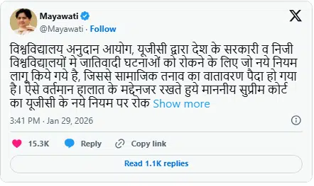BSP सुप्रीमो मायावती ने UGC नए नियम पर रोक का स्वागत किया