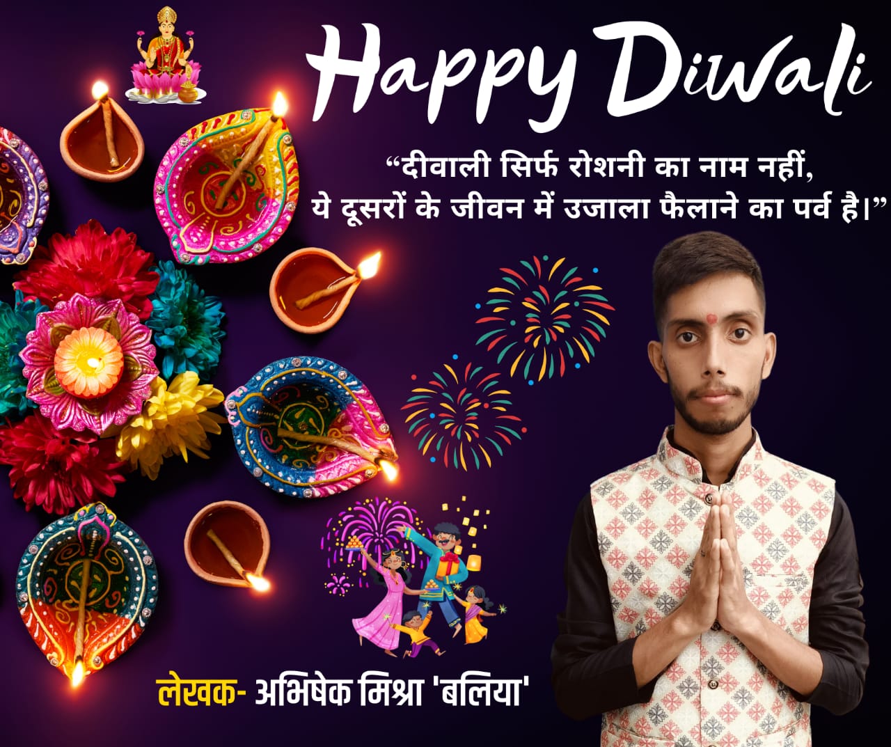 Ballia, UP Tak News: युवा कवि अभिषेक मिश्रा ने हमारे पोर्टल के माध्यम से इस दीवाली पर अपनी कविता “दीप बनो, जो जग को जगाए” के माध्यम से समाज के लिए एक महत्वपूर्ण संदेश पेश किया है। उनकी रचना सिर्फ़ त्योहार की रौनक नहीं दिखाती, बल्कि सत्य, सेवा, ज्ञान और मानवता की अहमियत को भी उजागर करती है।